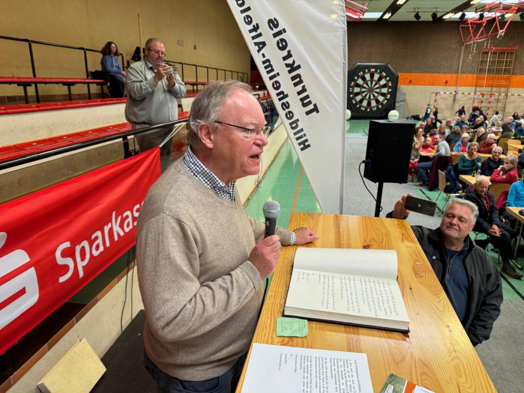 Einer der bewegendsten Momente: Stephan Weil, Ministerpräsident a.D., trug sich in das Goldene Buch der Gemeinde Diekholzen ein – als Anerkennung für die herausragende Gemeinschaftsleistung.