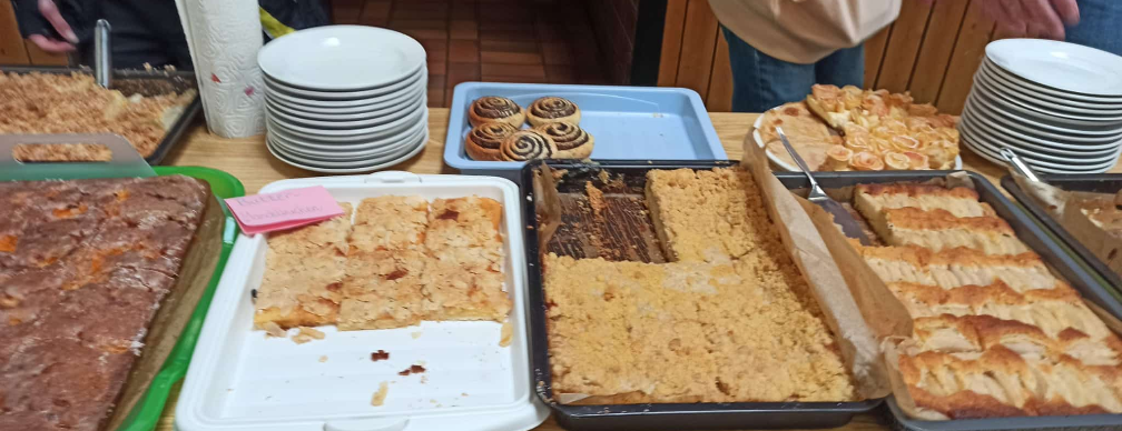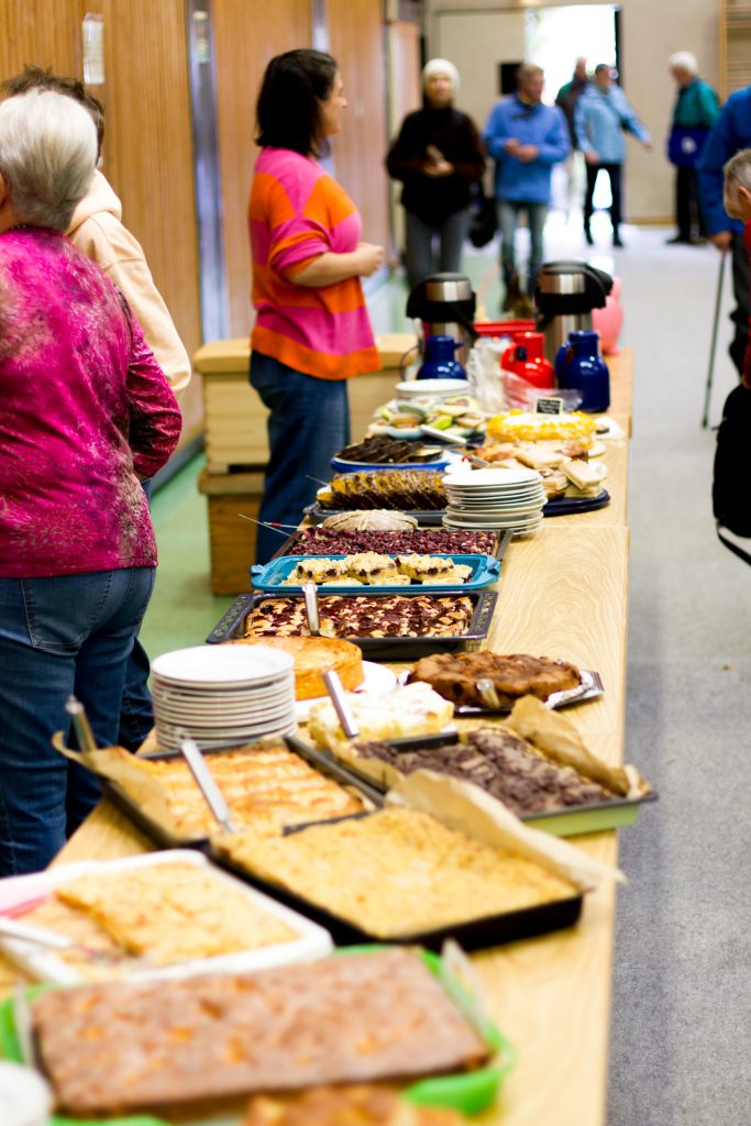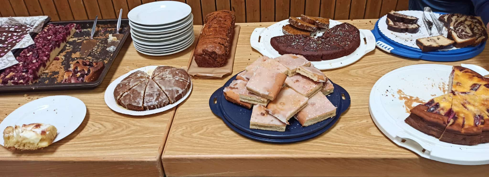 Das groĂźe Kuchenbuffet mit 75 selbstgebackenen Kuchen war bis auf den letzten KrĂĽmel leergefegt.