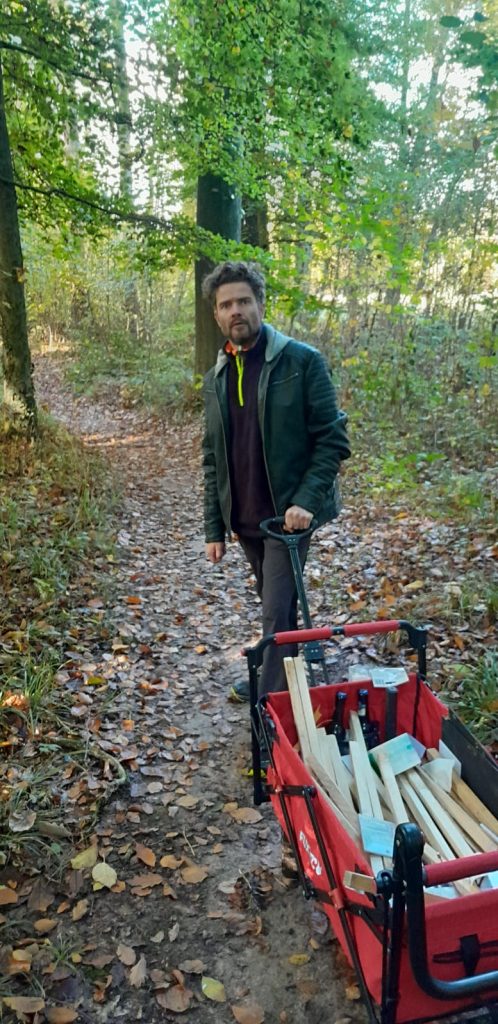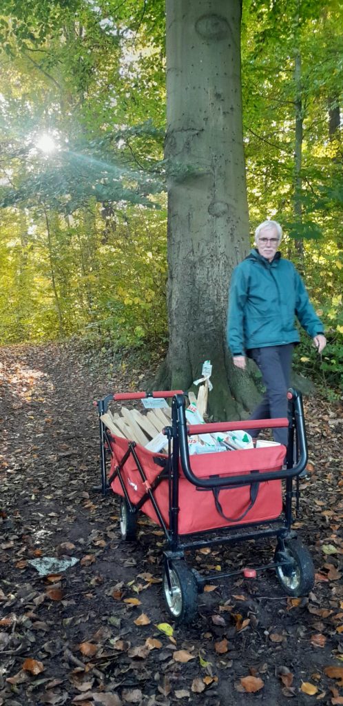 Wanderwart Michael Schwerdtfeger vom SC Barienrode und Marcel Frank von der Sparte Orientierungslauf des SV Hildesia Diekholzen haben sich mit Bollerwagen, Werkzeug und jeder Menge Motivation auf den Weg gemacht – die offizielle Beschilderung der Wanderstrecken für den großen Tag des Wanderns 2025 hat begonnen!
